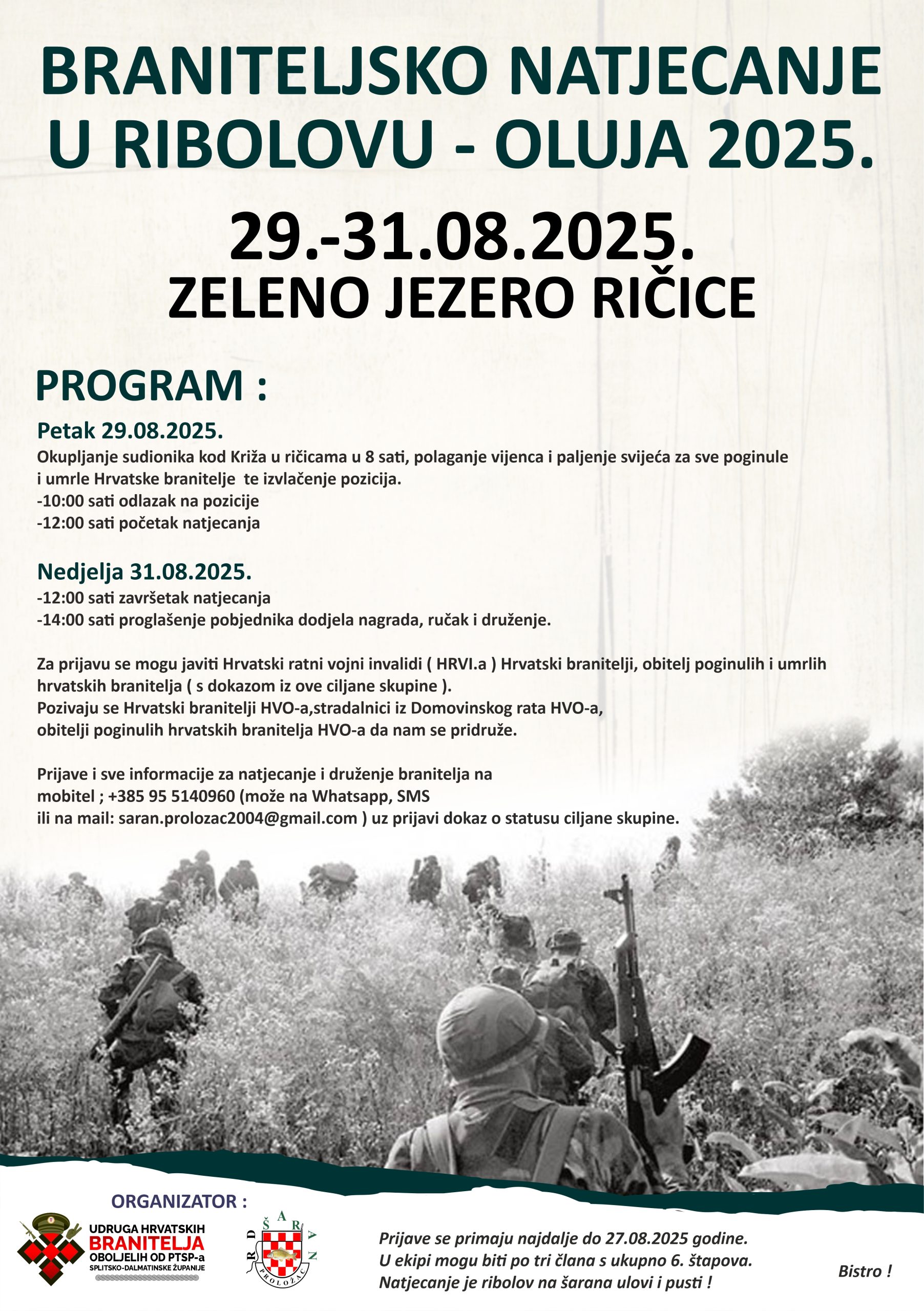 Na Zelenom jezeru u Ričicama, uz druženje u ribolovu na šarane, od 29 do 31. kolovoza održan je Braniteljski kup “OLUJA 2025”. Kup je organizirala Udruga