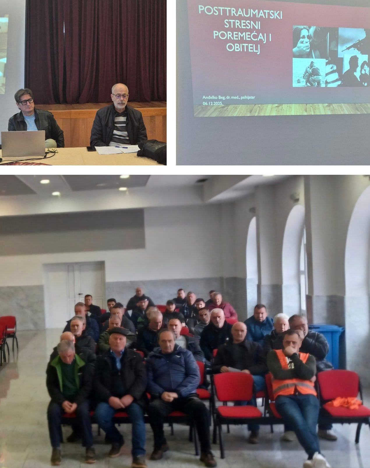 Ispred Udruge hrvatskih branitelja oboljelih od PTSP-a Splitsko-dalmatinske županije, organizirali smo tribinu ,,PTSP i obitelj,, Predavači su bili Dr. Anđelko Beg, psihijatar i Trpimir Jurić,
